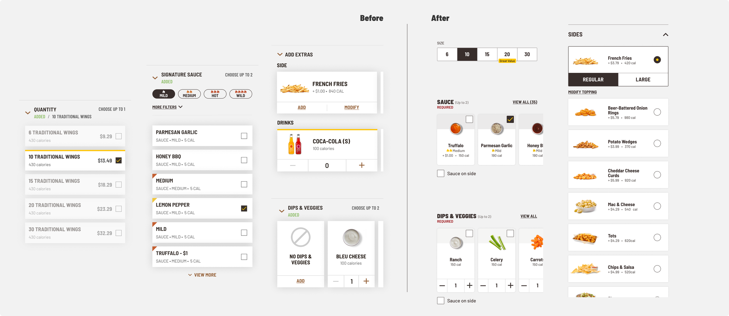 In-restaurant dining experiences have evolved significantly over the past few years. With COVID accelerating these changes, Buffalo Wild Wings pivoted to embrace the new dining norm. Within three months, we launched a web-based product that enables customers to use their own devices to browse the menu, order food and drinks for dine-in, and checkout at their convenience without waiting for a server. What makes this experience unique is its hybrid approach to server involvement. The customer can order and pay independently, order part of their meal through a server, or enjoy a traditional full-service experience.